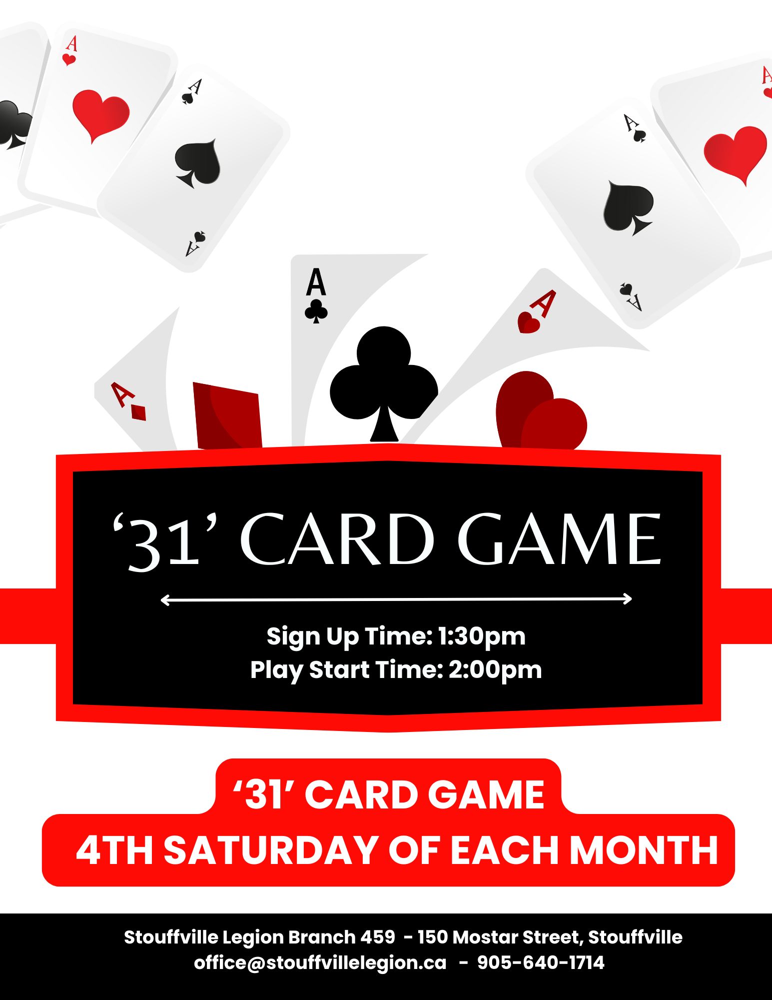 “31 CARD GAME” in the Clubroom Calendar Add to Calendar Add to Timely Calendar Add to Google Add to Outlook Add to Apple Calendar Add to other calendar Export to XML When: January 24, 2026 @ 2:00 pm 2026-01-24T14:00:00-05:00 2026-01-24T14:15:00-05:00 Entertainment 31 Card Game Fun Get Free Email Updates! Signup now and receive an email once I publish new content. Thank you for subscribing. Something went wrong. I agree to have my personal information transfered to MailChimp ( more information ) I will never give away, trade or sell your email address. You can unsubscribe at any time.