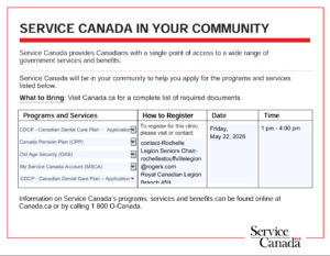 To register contact: Rochelle Legion Seniors Chair – Rochellestouffvillelegion@rogers.com