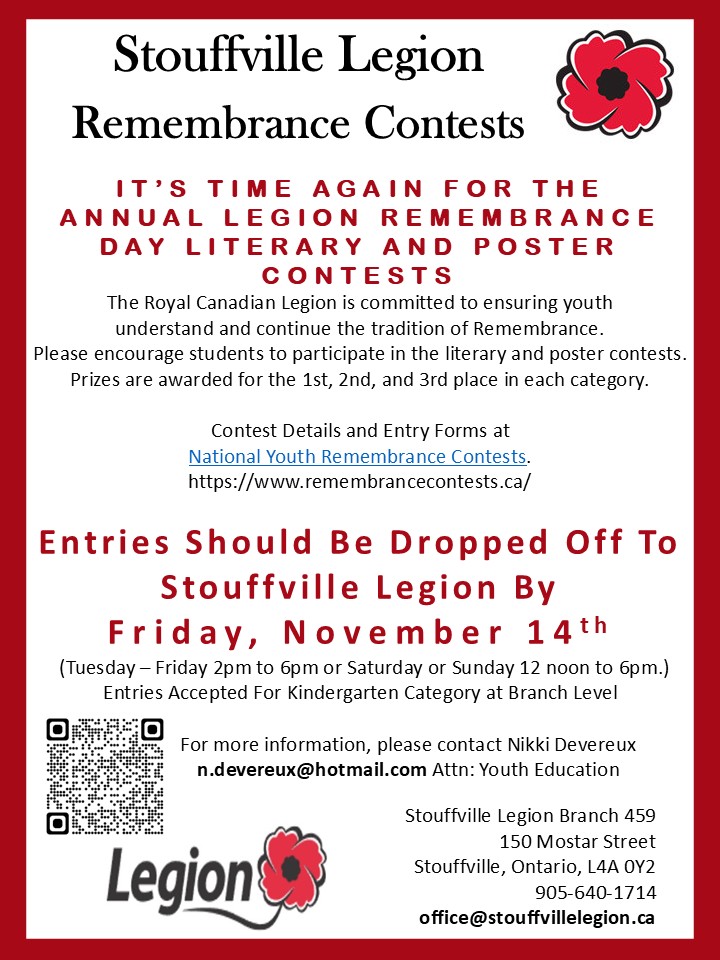 Youth Remembrance Contests Deadline extended to Friday, November 21st for Branch 459. LITERARY, POSTER & VIDEO ENTRY FORM CONTEST GUIDELINES National Youth Remembrance Contests Website Get Free Email Updates! Signup now and receive an email once I publish new content. Thank you for subscribing. Something went wrong. I agree to have my personal information transfered to MailChimp ( more information ) I will never give away, trade or sell your email address. You can unsubscribe at any time.